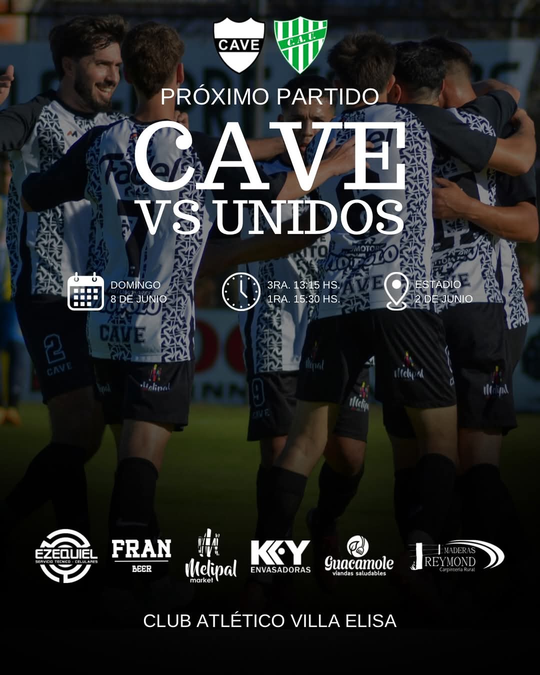 Por la décimo primera fecha del apertura el Club Atlético Villa Elisa recibe al Club Unidos en su estadio "2 de Junio" Los partidos son: Tercera: 13:15 hs. | Primera: 15:30 hs.