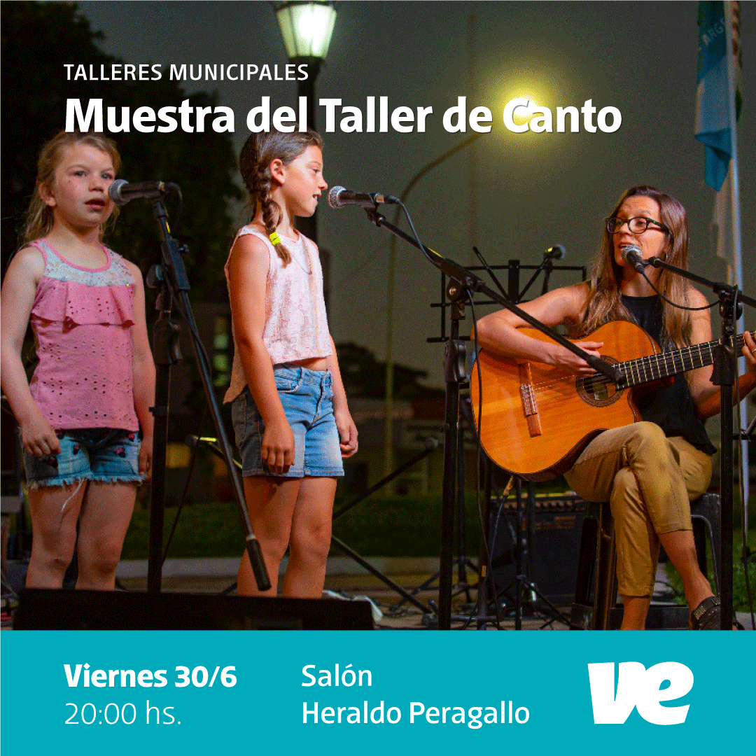 El próximo viernes 30 de junio a las 20 horas, tendrá lugar en el Salón Heraldo N. Peragallo una nueva muestra del Taller Municipal de Canto, organizada por el Área Municipal de Cultura y Educación.